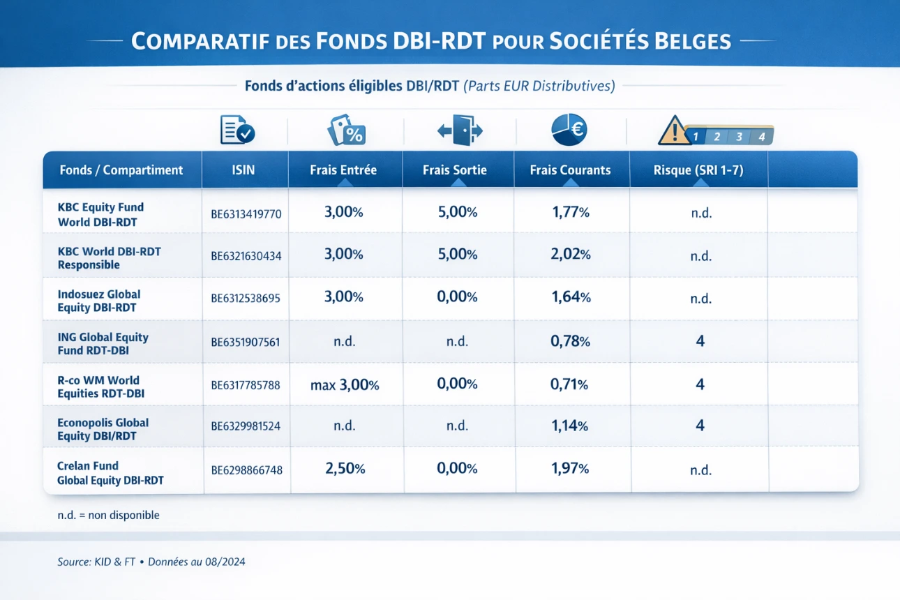 Beaucoup de compartiments sont structurés pour l’éligibilité, mais la distribution peut ne pas être 100% DBI si le portefeuille n’est pas intégralement en titres éligibles. Exemple KBC : min 50%, cible 70–100% “en normal”.