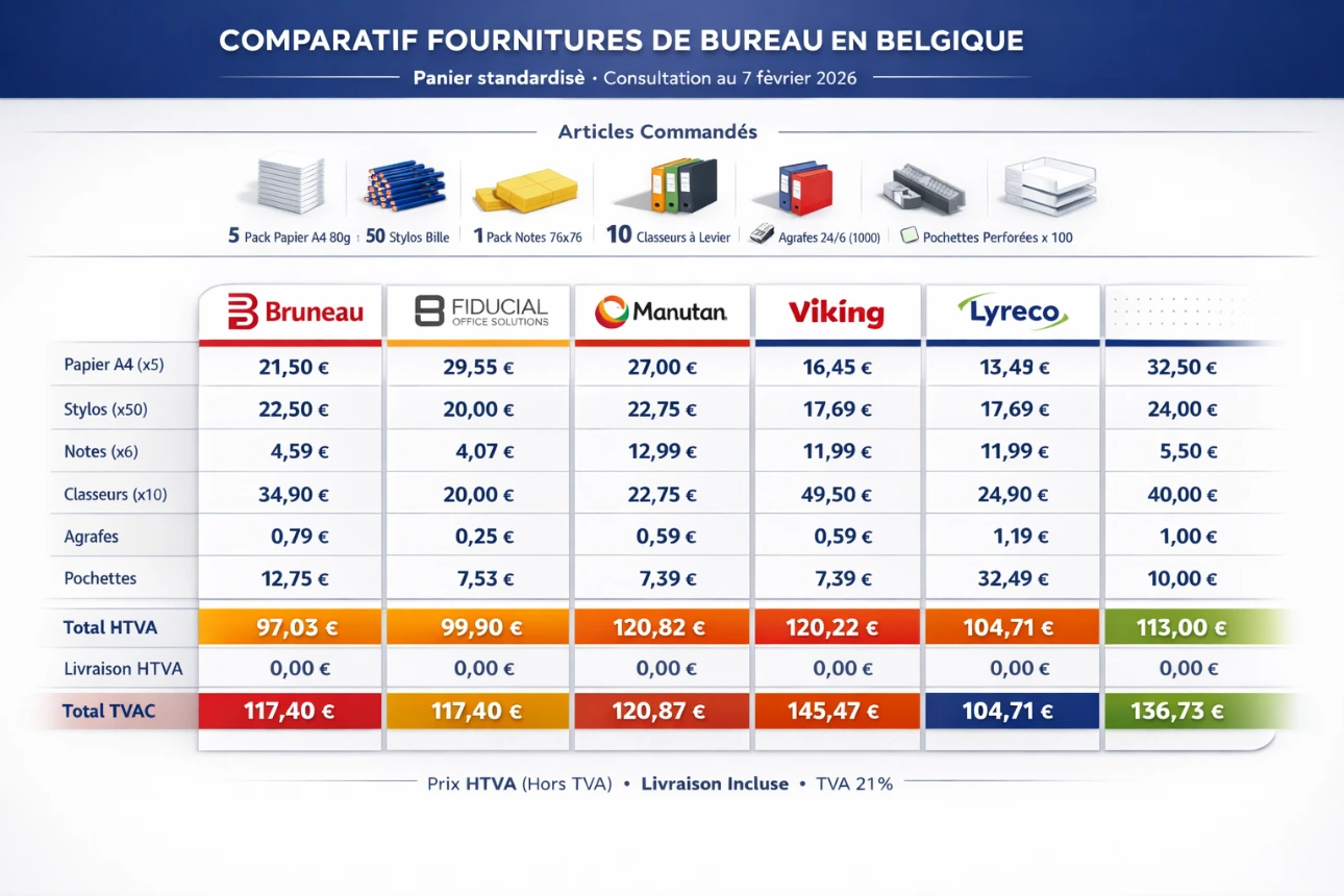 Comparatif fournisseurs de fournitures de bureau en belgique pour 2026