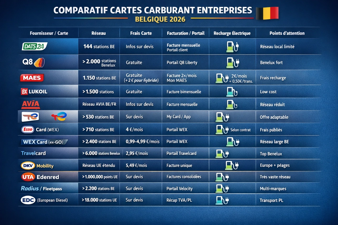 Comparatif des cartes carburant pour la belgique en 2026
